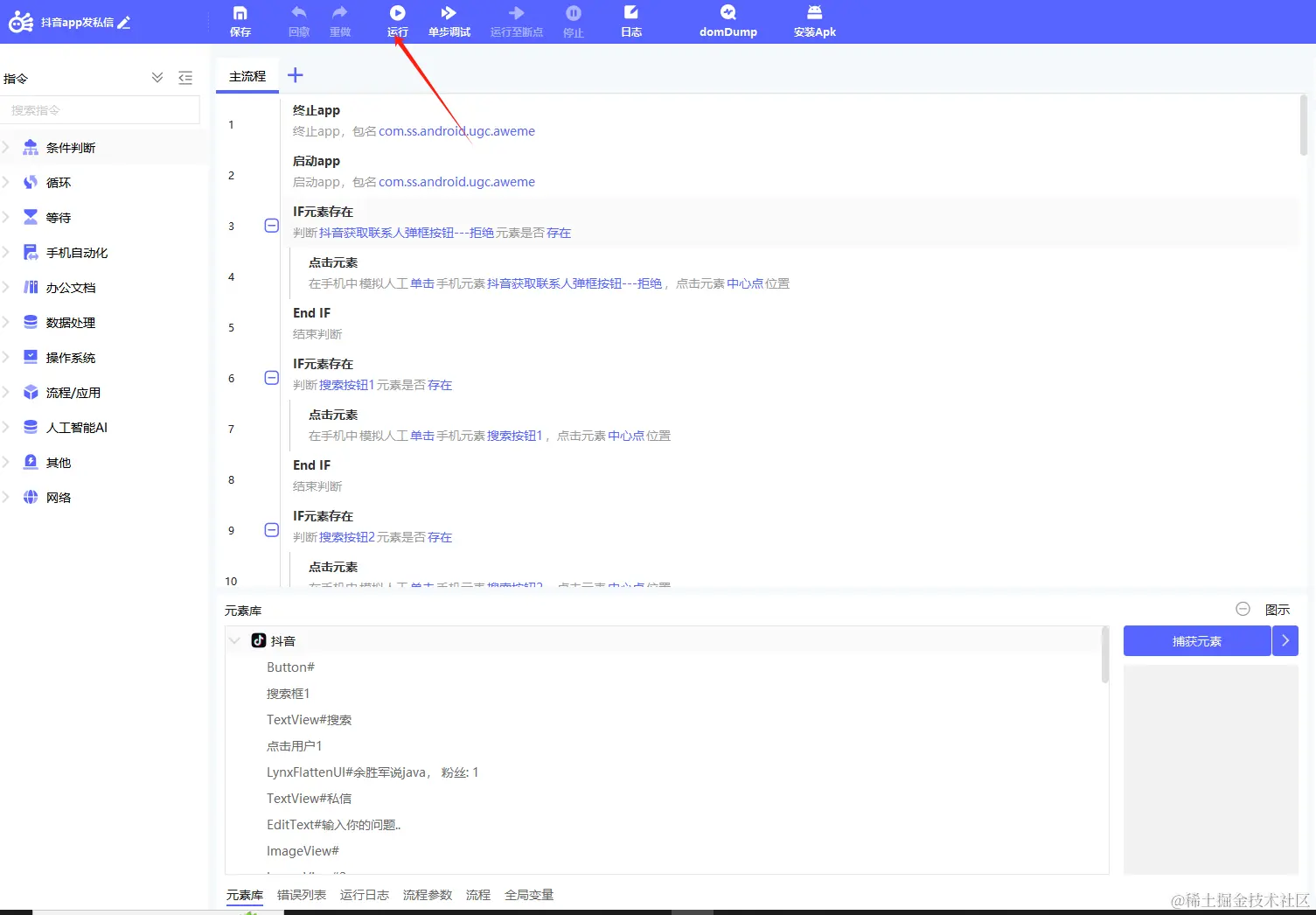 以上便是本次rpa发送抖音私信的指令操作,这样能够实现自动对抖音用户进行私信。