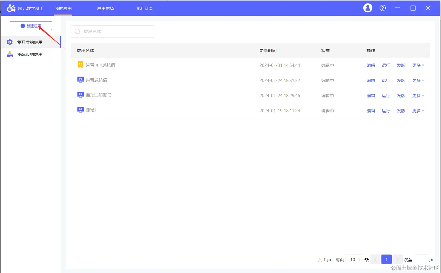 - 打开rpa客户端,新建应用,选择移动端自动化应用