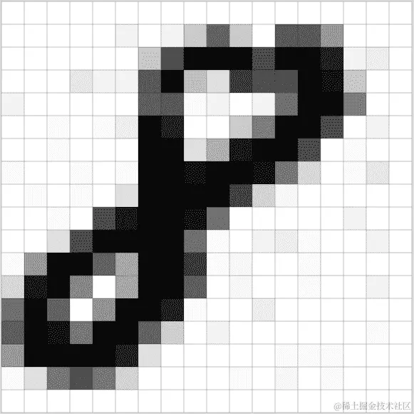 这里有 28x28 个像素。如果是彩色的话,会有三个 —— 一个红色的,一个绿色的,一个蓝色的。我们的任务是查看数字数组并弄清楚这是一个棘手的数字 8。我们如何做到这一点?