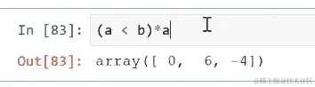 因此,你可以使用这个来做各种事情而不需要循环。例如,我现在可以将其乘以a,这里是所有小于b的a的值: