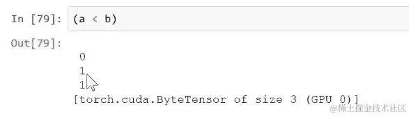 更好的是,如果你在 PyTorch 中执行这个操作,并且你的数据是用.cuda()创建的,然后将其放在 GPU 上,那么你的 GPU 可以一次执行大约 10,000 个操作。因此,这将比 C 快 100 倍。因此,这对于获得良好的性能至关重要。你必须学会如何通过利用这些逐元素操作来编写无循环的代码。这不仅仅是加号(+)。我还可以使用小于号(<),这将返回 0,1,1。