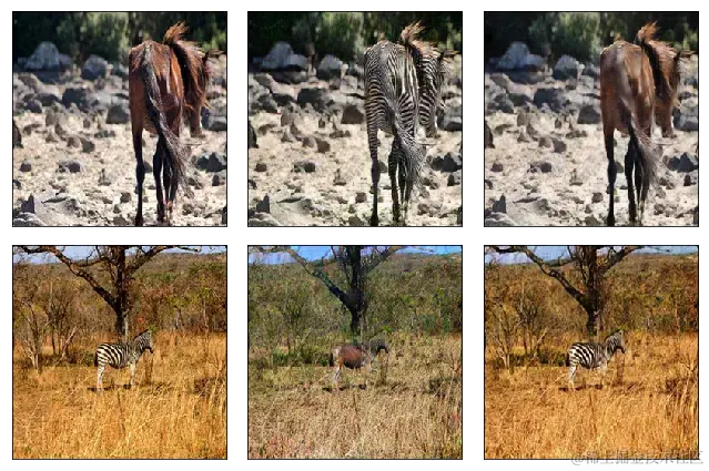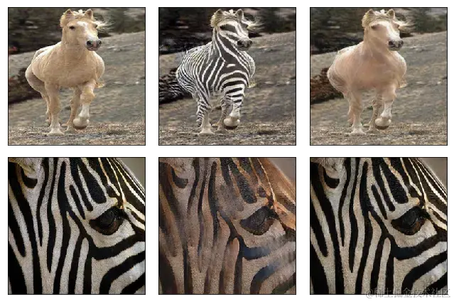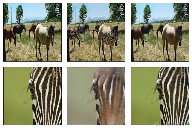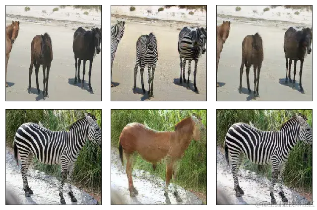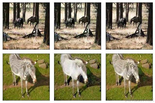 我们训练了一段时间,然后我们可以随便拿几个例子,这里有它们[2:15:29]。这里有马、斑马,然后再变回马。