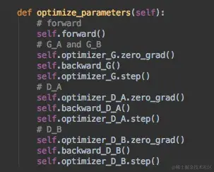 现在我们优化参数[2:11:19]。这样看起来很好。你可以看到每一步。首先,尝试优化生成器,然后尝试优化马判别器,然后尝试优化斑马判别器。zero_grad()是 PyTorch 的一部分,以及step()。因此,有趣的部分是实际执行生成器反向传播的部分。