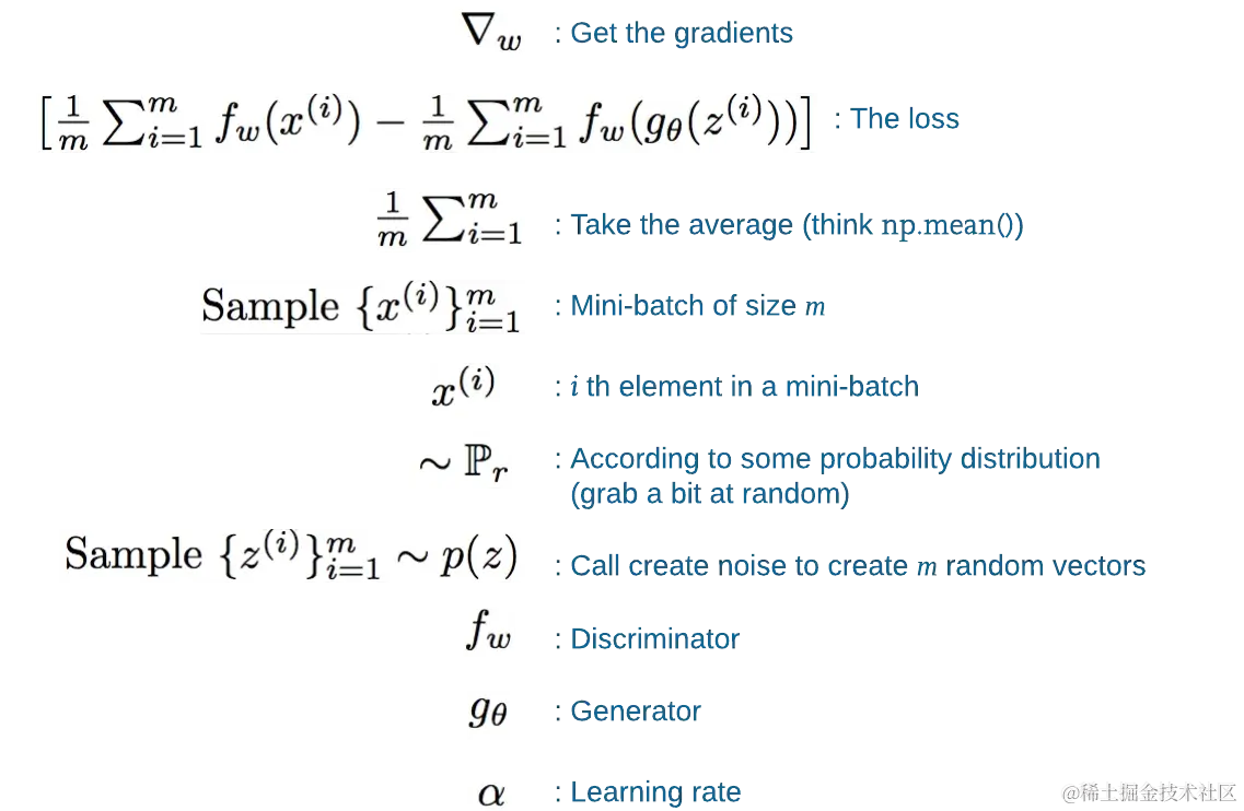 然后对于这个损失函数,我们将尝试最大化鉴别器的辨别能力,同时最小化生成器的辨别能力。因此,生成器和鉴别器将面对面地对抗。当你在论文中看到这个 min max 时,基本上意味着在你的训练循环中,一个东西试图让某事变得更好,另一个东西试图让某事变得更糟,有很多方法可以做到,但最常见的是你会在两者之间交替。你经常会在数学论文中看到这个被简称为 min-max。所以当你看到 min-max 时,你应该立即想到对抗训练。