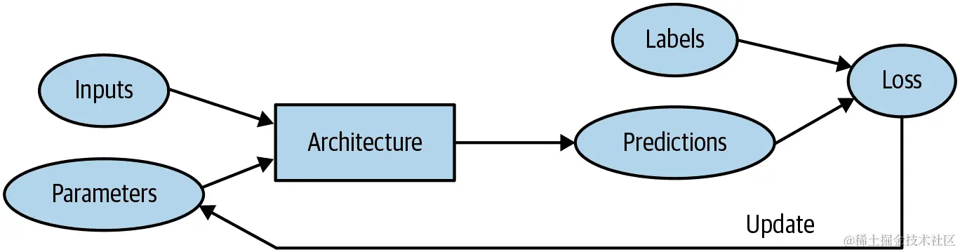 实际上,并非一定如此。情况更为微妙。这是因为在现实场景中,我们很少仅通过一次训练参数来构建模型。相反,我们可能通过各种建模选择来探索模型的许多版本,包括网络架构、学习率、数据增强策略等因素,我们将在接下来的章节中讨论。其中许多选择可以描述为超参数的选择。这个词反映了它们是关于参数的参数,因为它们是控制权重参数含义的高级选择。
