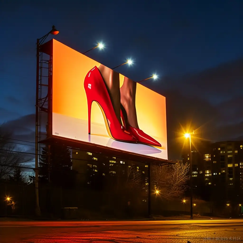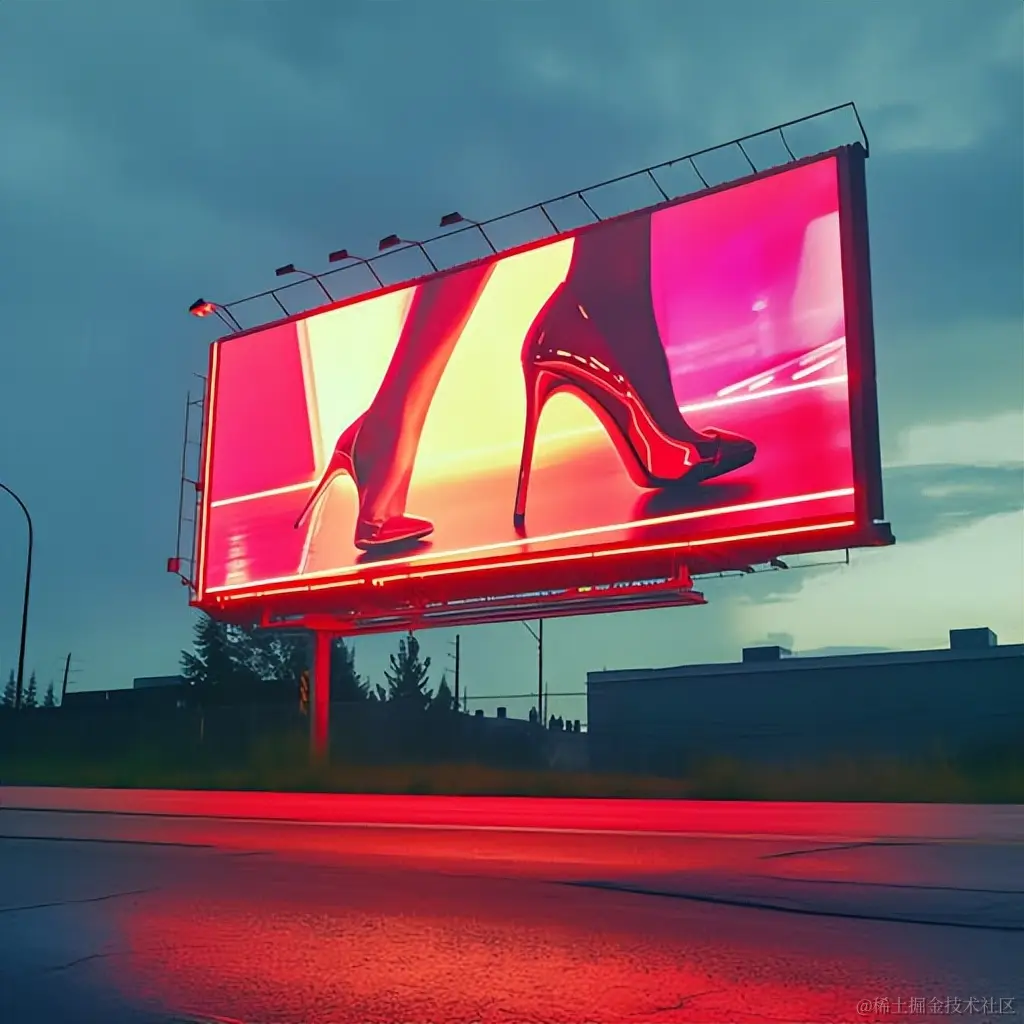 a billboard with a high-heeled, in the style of realistic lighting, video art, high-quality photo, street scenes, 8k resolution