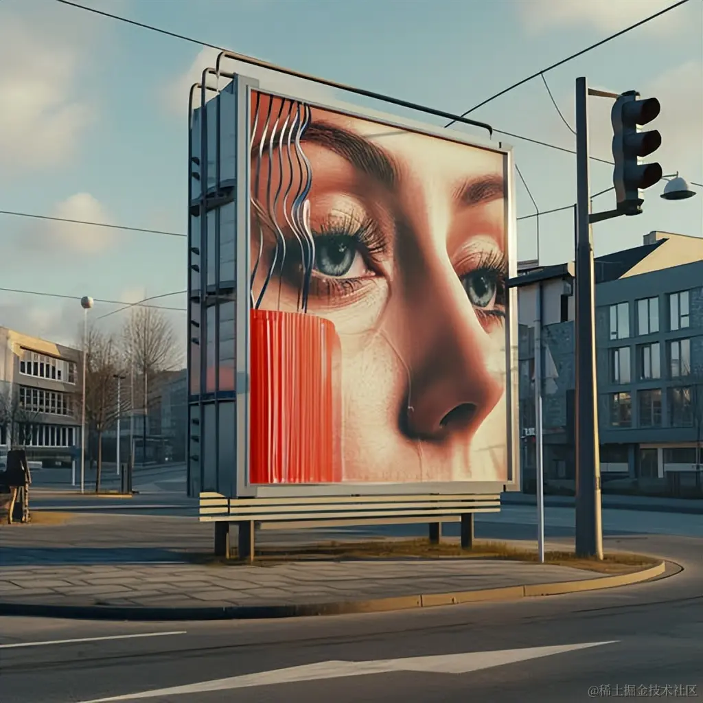 一则促销睫毛夹的广告张贴在街头,采用Cinema4D渲染风格,照片般逼真的风景,32k超高清,Signe Vilstrup风格,闪烁的光线,逼真的肖像。