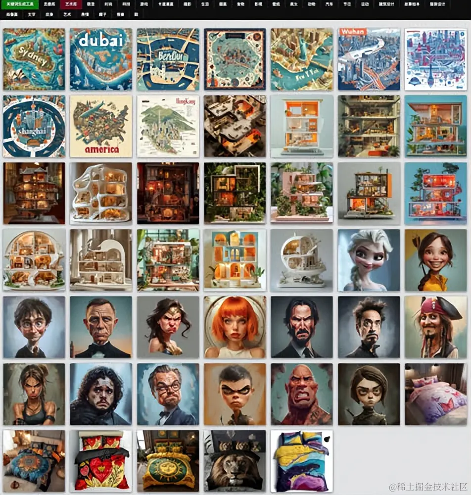 在词图库中,您可以发现各种刺激的提示词,将其输入到MidJourney等AI工具中,以生成各种美丽的图像和设计。我们还鼓励创作者分享他们使用提示词创建的作品,以激发更多创作灵感。