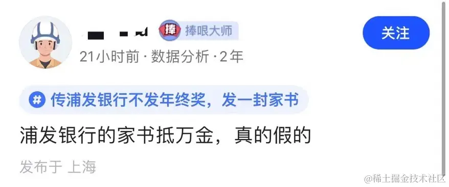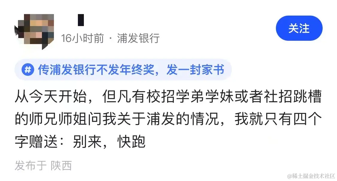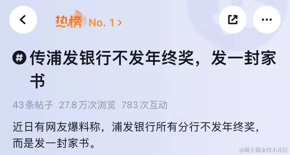 昨晚,某职场 App 上,一标题名为「传浦发银行不发年终奖,发一封家书」冲上热搜。