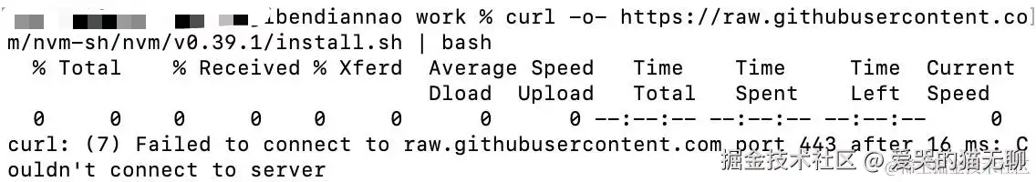 在安装nvm时,报curl: (7) Failed to connect to raw.githubusercontent.com port 443 after 16 ms: Couldn't connect to server。