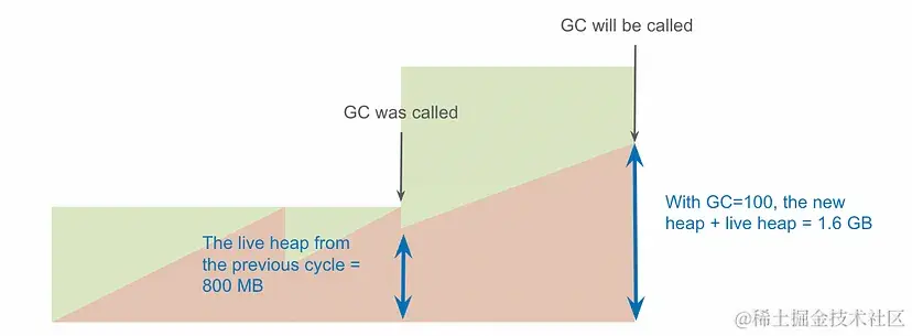 GOGC的默认值是100,意味着当新内存达到活跃堆内存的100%时将触发垃圾收集。