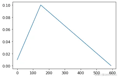 最后,我们将检查学习率是否遵循我们定义的调度(如您所见,我们这里没有使用余弦退火):