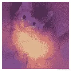 在这种情况下,明亮黄色的区域对应于高激活,紫色区域对应于低激活。在这种情况下,我们可以看到头部和前爪是使模型决定这是一张猫的图片的两个主要区域。