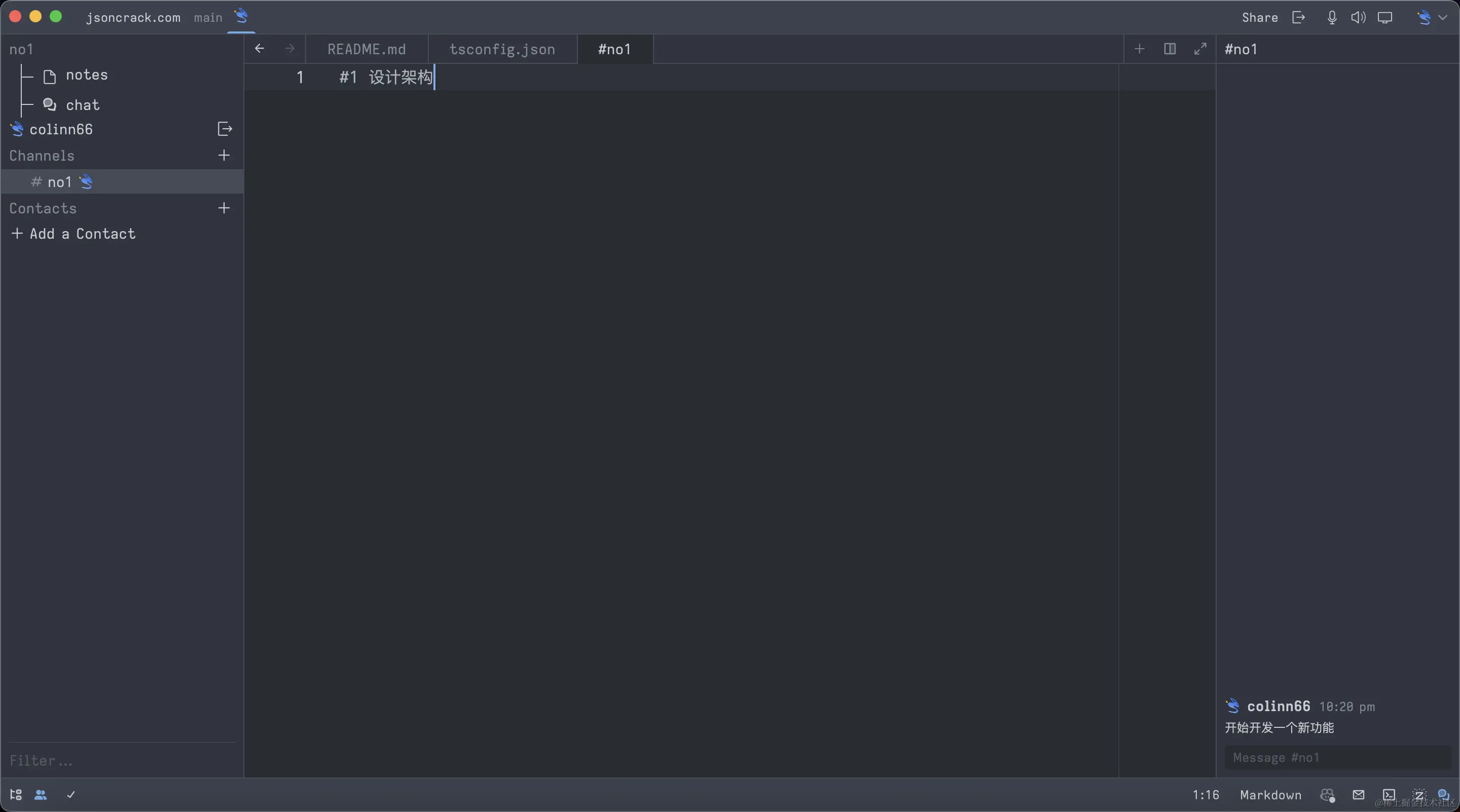 每个频道都有一个与之关联的注释文件,用于跟踪当前状态、新想法,或在深入研究代码之前协作构建您正在开发的功能的设计。