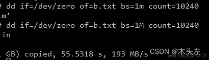 这条命令会创建一个名为b.txt的文件,大小为10GB(10240MB),内容全为0。