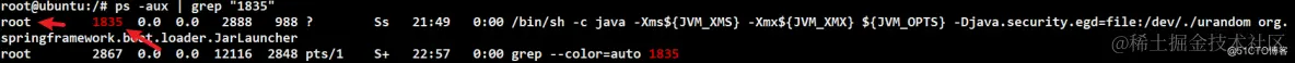 第一步:查找java进程对应的用户(命令为:ps -aux | grep "进程号")