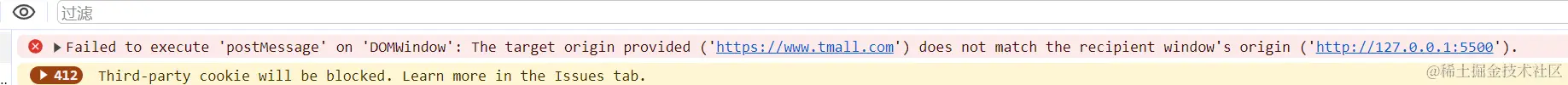 报错显示postMessage执行失败,并且提示我源不同。这让我很费解,我只能理解为像天猫这样的成熟的网址是做了相应的保护措施的。