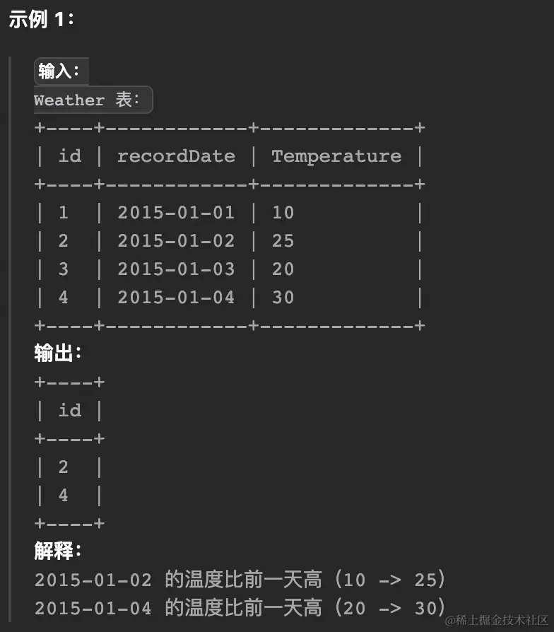 这题要求是和前一天比,所以需要自连接了,表去连接昨天的表,连接条件是今天比昨天多一天。