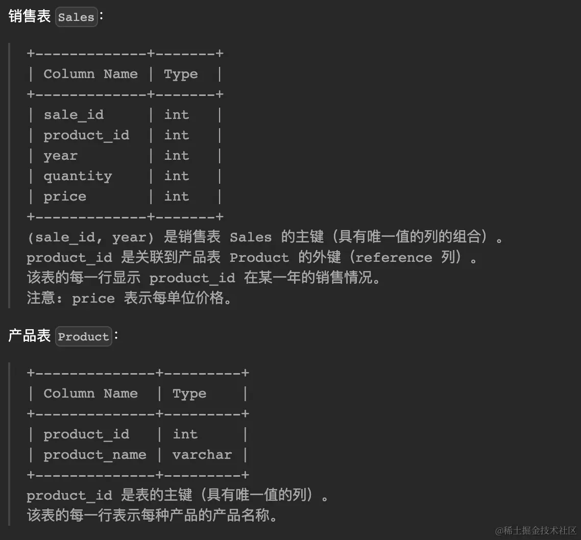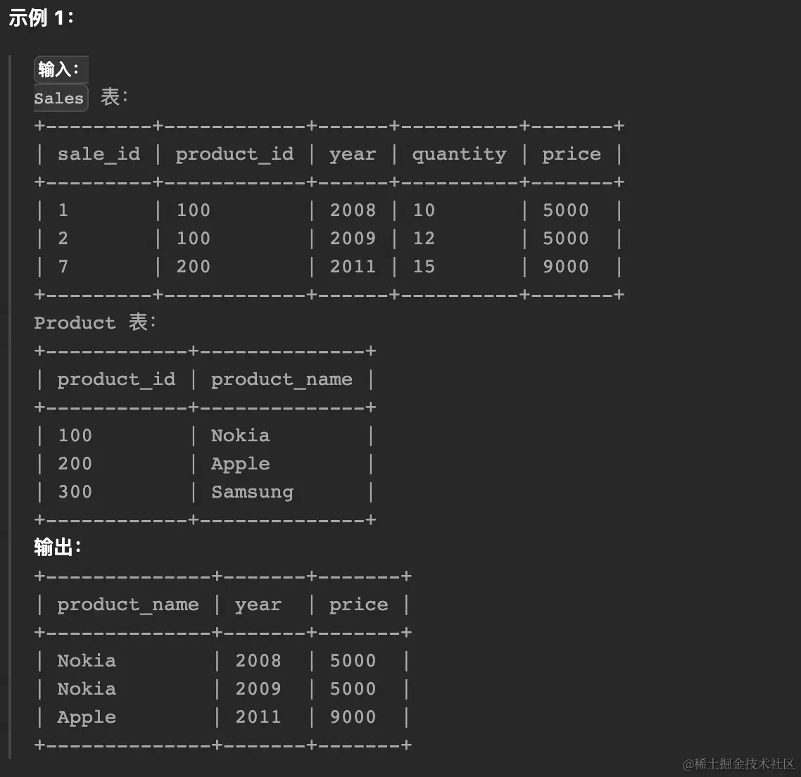 编写解决方案,以获取 Sales 表中所有 sale_id 对应的 product_name 以及该产品的所有 year 和 price 。