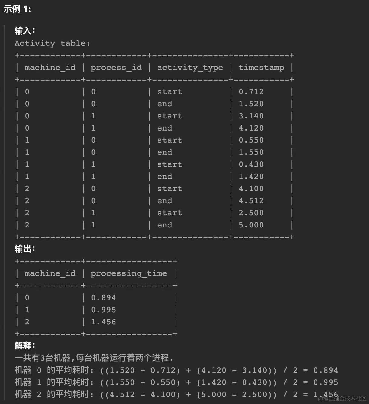 现在有一个工厂网站由几台机器运行,每台机器上运行着 相同数量的进程 。编写解决方案,计算每台机器各自完成一个进程任务的平均耗时。