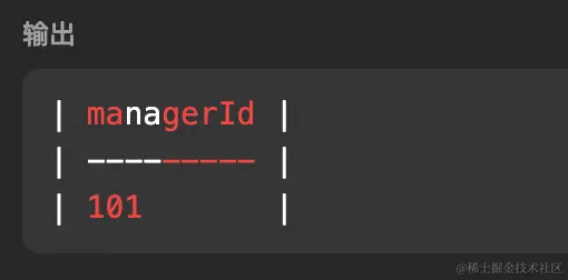 - 先搜索出有五名及以上的下属的 managerId,需注意的是,having 为分组后的筛选条件,where 为分组前的筛选,需要分清楚差别。