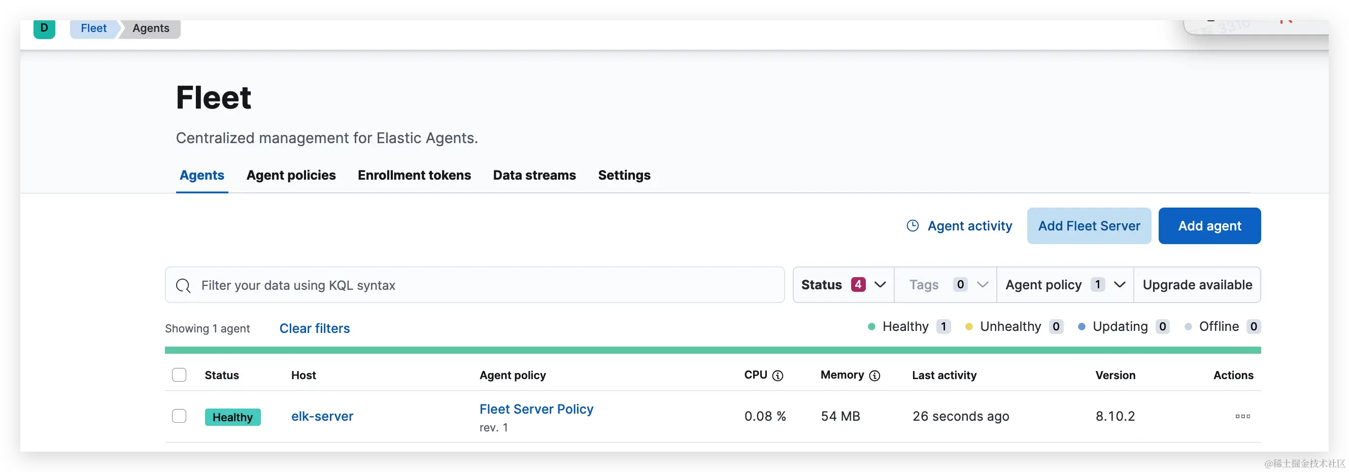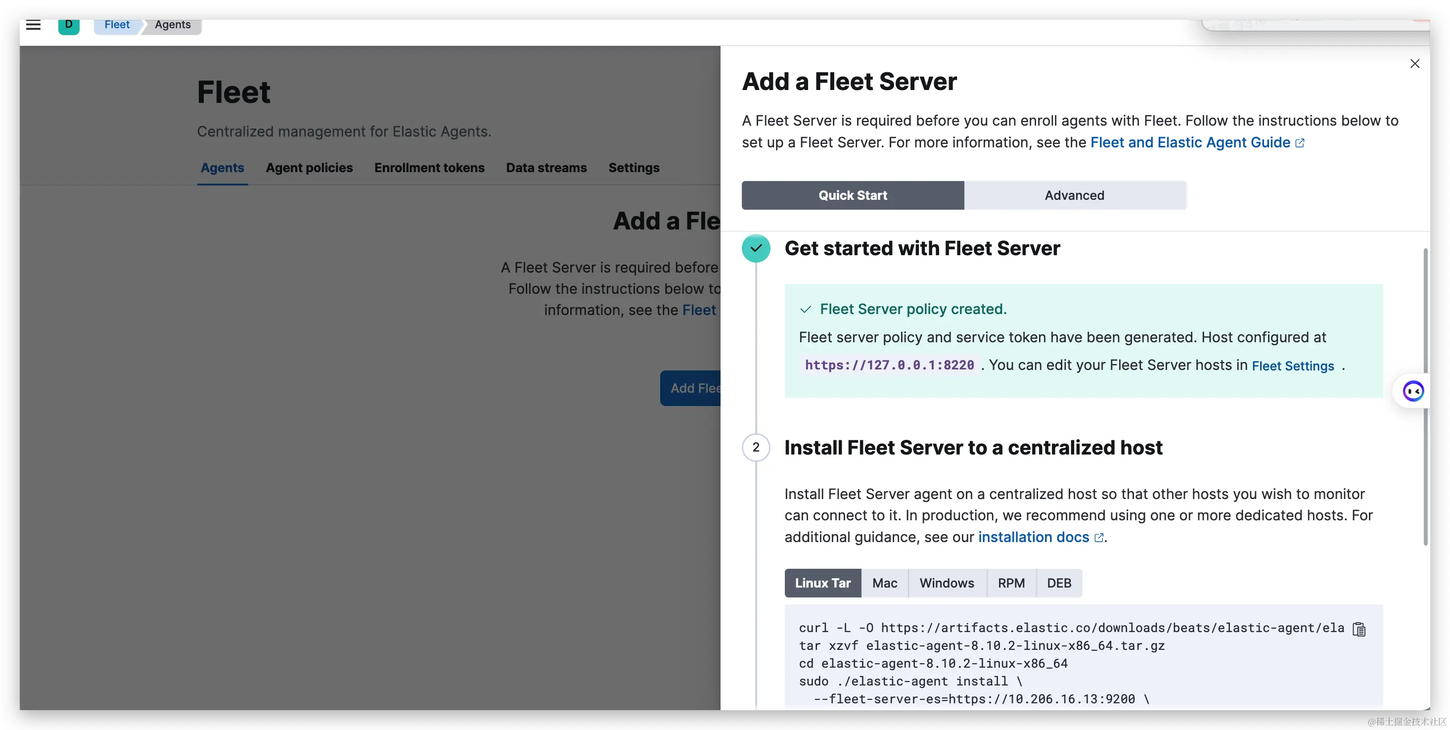 当Fleet Server部署完成后,之后进行Fleet Agent部署。