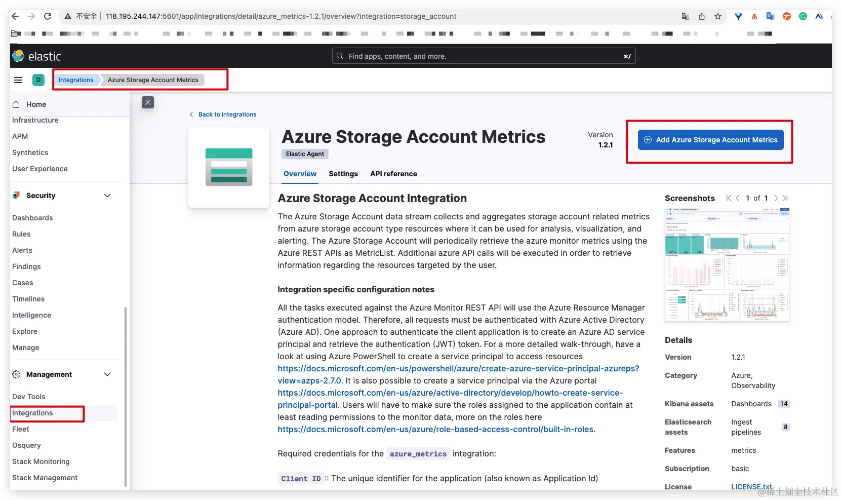 在目前新版本中,ELK集成中利用elastic-agent可以真多非常的云及中间价进行相关指标采集,不仅仅限于日志,利用公有云的API可以调用监控数据,配合日志进行安全分析,可以更全面的展示云上的资源指标,本文将使用ELK(Elasticsearch、Logstash、Kibana)的Fleet功能来集成Azure Metrics,以实现对Azure资源的指标数据的监控和分析。ELK是一个开源工具组合,用于日志管理和分析,而Azure Metrics是Azure云平台提供的一种服务,用于收集和存储Azure资源的指标数据。Fleet是ELK的管理工具,可用于集中管理多个Elasticsearch和Kibana实例。