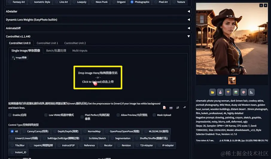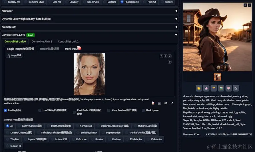 ControlNet的正确配置对于实现高质量的换脸效果至关重要。请按照以下步骤确保一切设置正确: