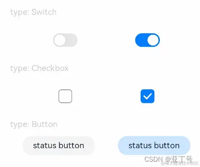 组件提供勾选框样式、状态按钮样式及开关样式。