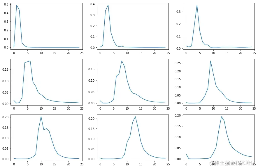 我们可以将输出放在循环内部而不是在循环外部[20:25]。如果这样做,我们现在将为每个输入生成一个单独的输出。上面的代码,隐藏状态每次都被替换,最终我们只输出最终的隐藏状态。但是如果我们有一个说hs.append(h)并在最后返回hs的东西,那就是下面的图片。