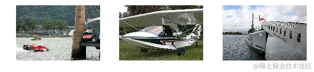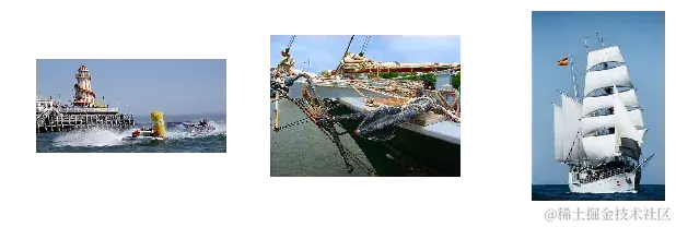 现在让我们做一些有点不同的事情 —— 就是取出我们所有的预测(pred_wv),基本上取出我们整个验证图像集的预测,并创建一个图像表示的 KNN 索引,因为记住,它正在预测那些应该是词向量的东西。现在让我们获取“船”的快速文本向量,船不是 ImageNet 的概念 —— 然而我们现在可以找到所有在我们预测的词向量(即我们的验证集)中最接近“船”这个词的图像,即使它并没有被训练过。