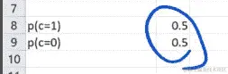 所以类别为 1 的概率就等于标签的平均值[1:23:20]。类别为 0 的概率是 1 减去那个值。所以有这两个数字: