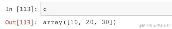 c = np.array([10,20,30]); c