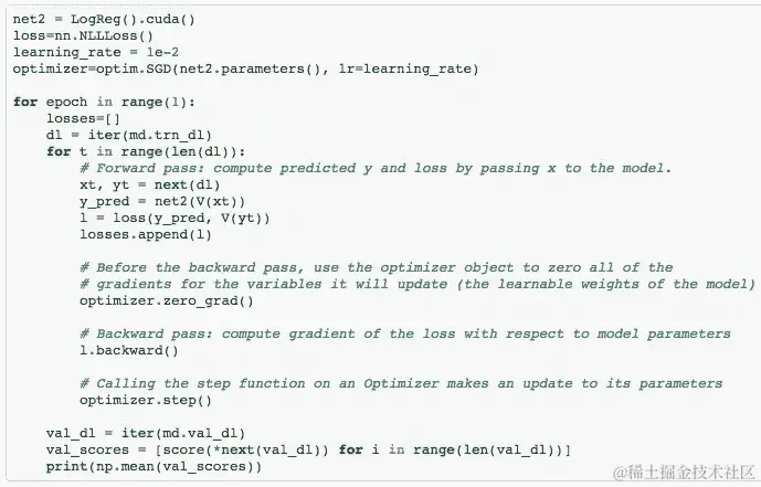 好了,我们时间到了,明天我们将看到什么...顺便说一句,我们可以用我们的 PyTorch 版本替换这个 LogisticRegression: