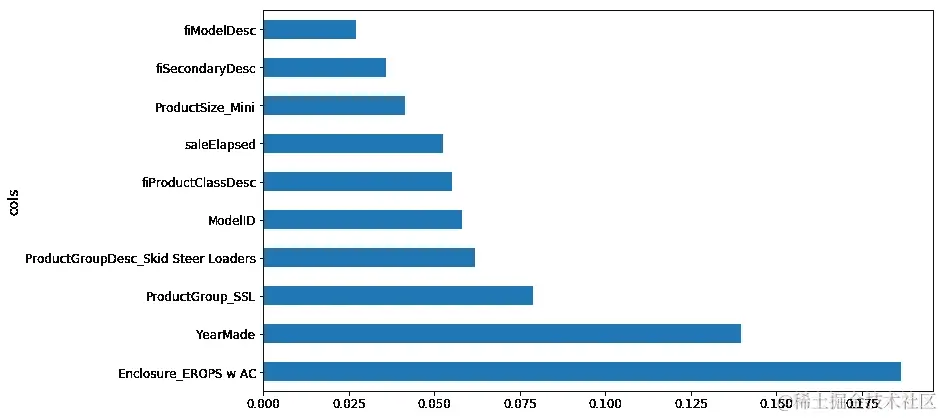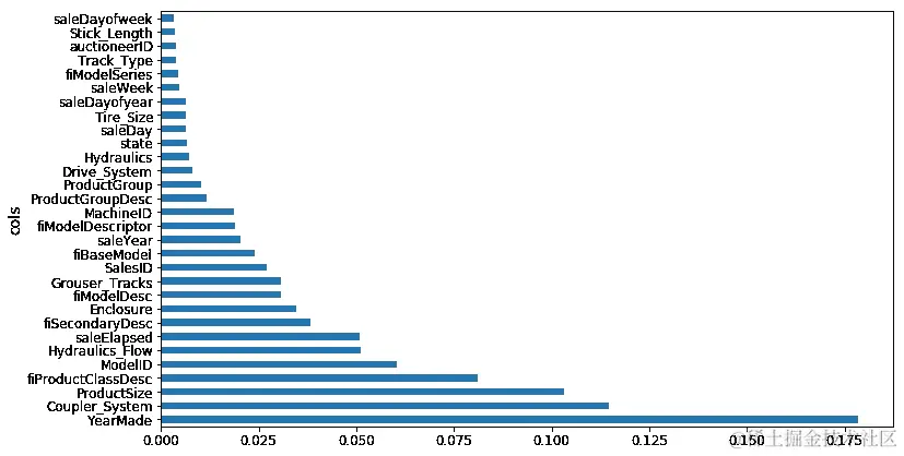 plot_fi(rf_feat_importance(m, df_keep));