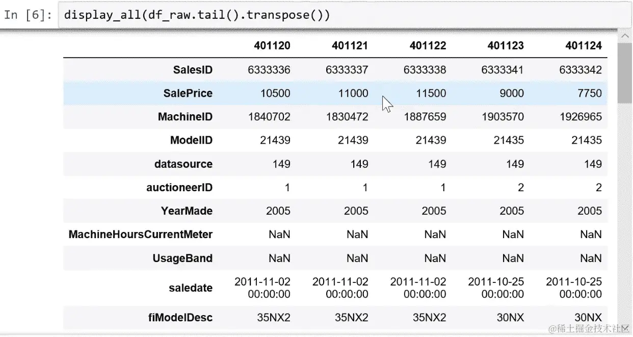 display_all(df_raw.tail().transpose())