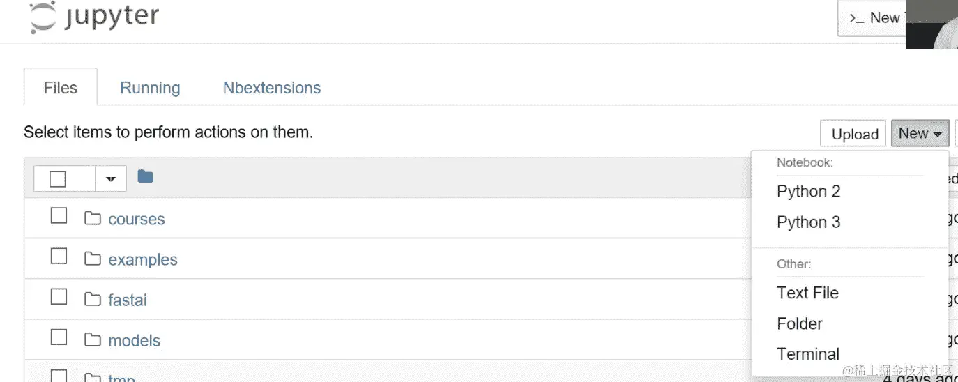 Jupyter 技巧[21:39] - 您可以打开基于 Web 的终端,如下所示: