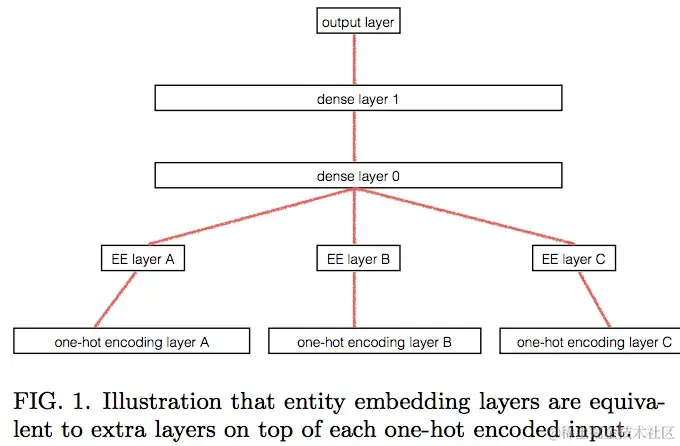 第二篇论文讨论了分类嵌入。图 1 的标题应该听起来很熟悉,因为它们讨论了实体嵌入层等效于一个独热编码后跟着一个矩阵乘法。