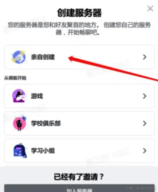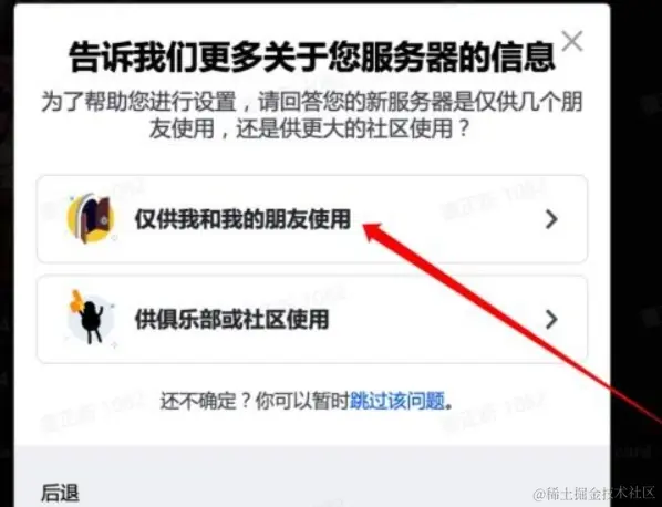 为了解决这个问题,我们可以创建一个属于自己的房间。在界面左上角点击“+”号,新建一个“仅供我和我的朋友使用”的服务器,可按下图点击操作: