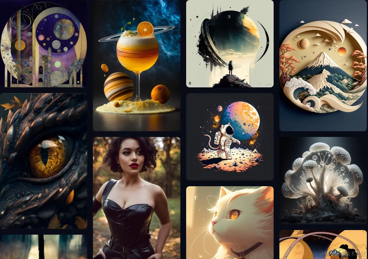 可以看到不管是设计质量还是设计风格的多样性,AI绘画作品都让人惊叹。
