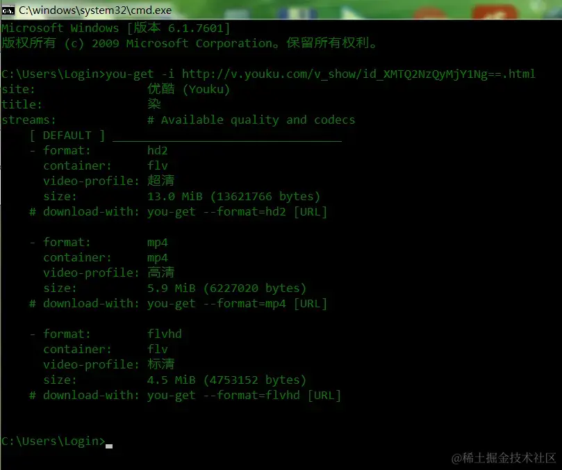 通常网页视频的格式为.flv,但部分网站会提供好几种视频格式,我们可以使用 You-Get 下载这些视频。
