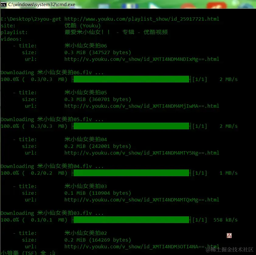 优酷等网站会提供视频列表,而 You-Get 可以通过视频列表进行批量下载。