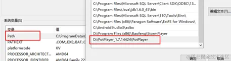 添加PotPlayerMini.exe的文件夹路径到系统环境变量