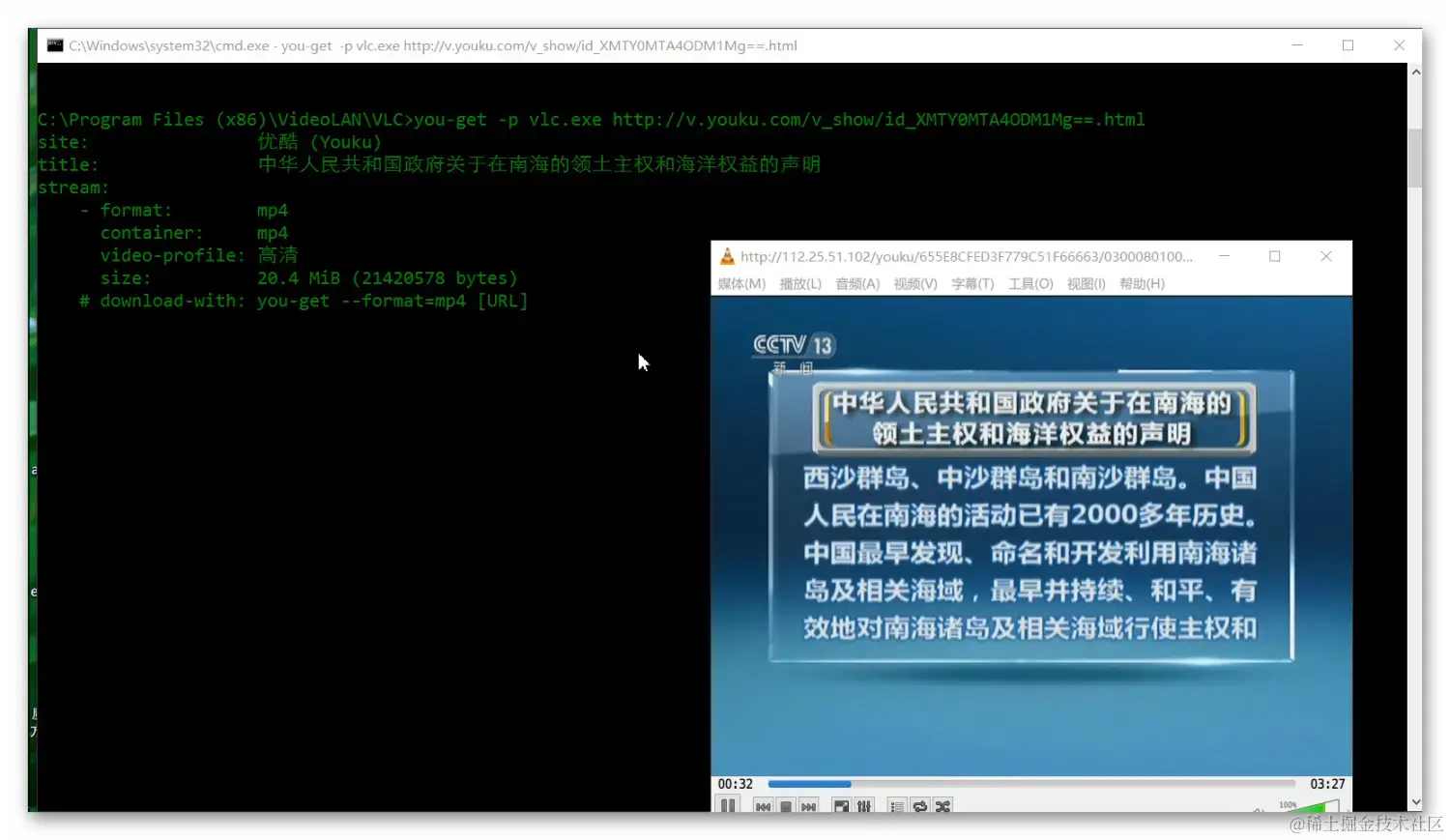 (注意 PotPalyer 可执行文件的文件名的大小写,大小写错误将会导致 you-get 报错,如果 Potplayer 播放失败请尝试使用 VLC 进行播放)