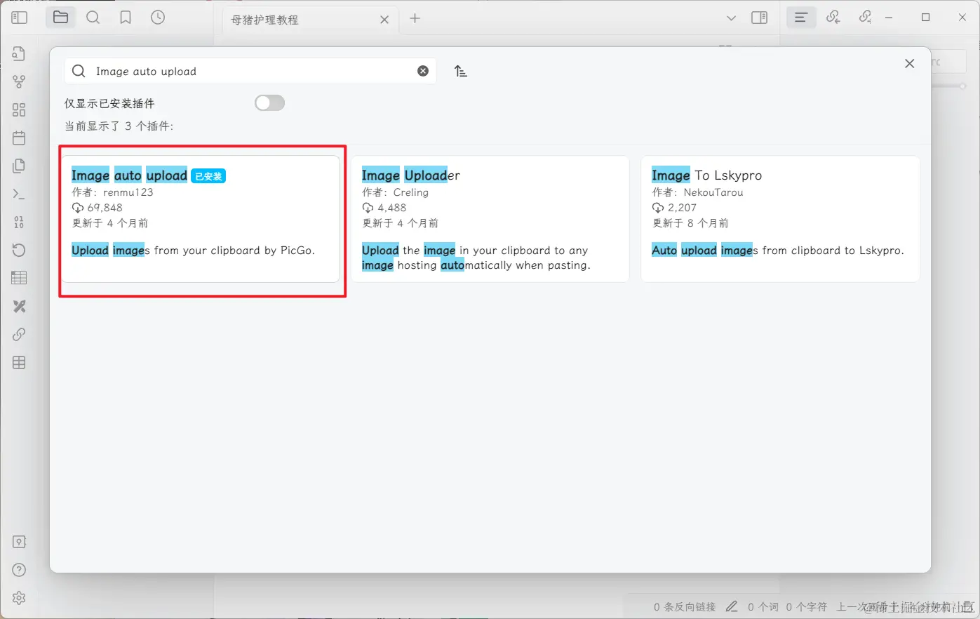 2.3 在插件市场下载 Image auto upload、Commander