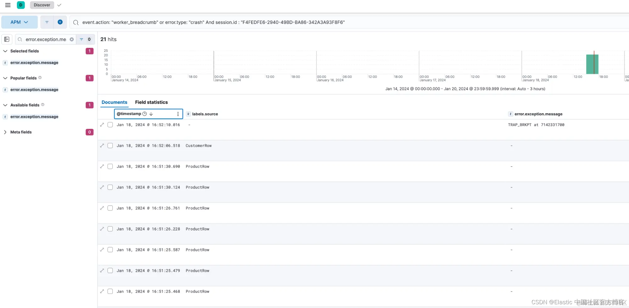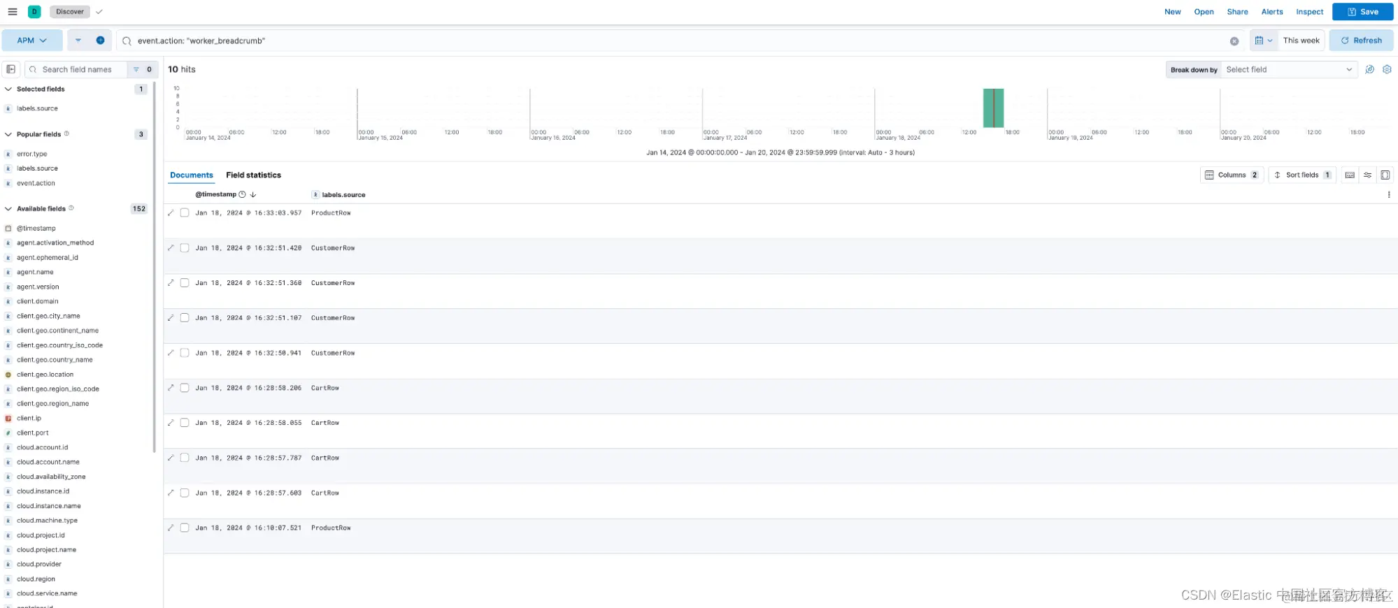 event.action: “worker_breadcrumb”,它会显示从这个新 breadcrumb 生成的所有事件。 - 你还可以查看各种来源:ProductRow、CustomerRow、CartRow 等。