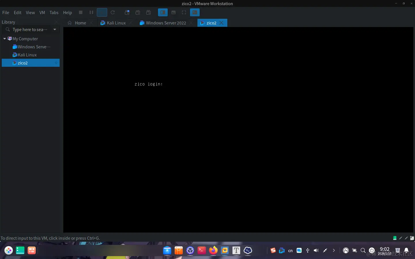 下载后打开VMware Workstation,点击主页上的File => Open按钮,选择zico2.ovf文件即可导入。