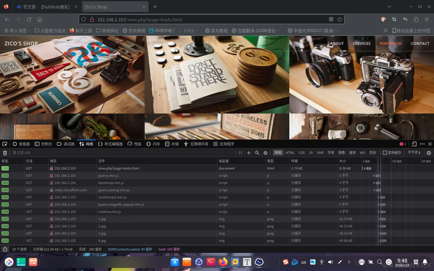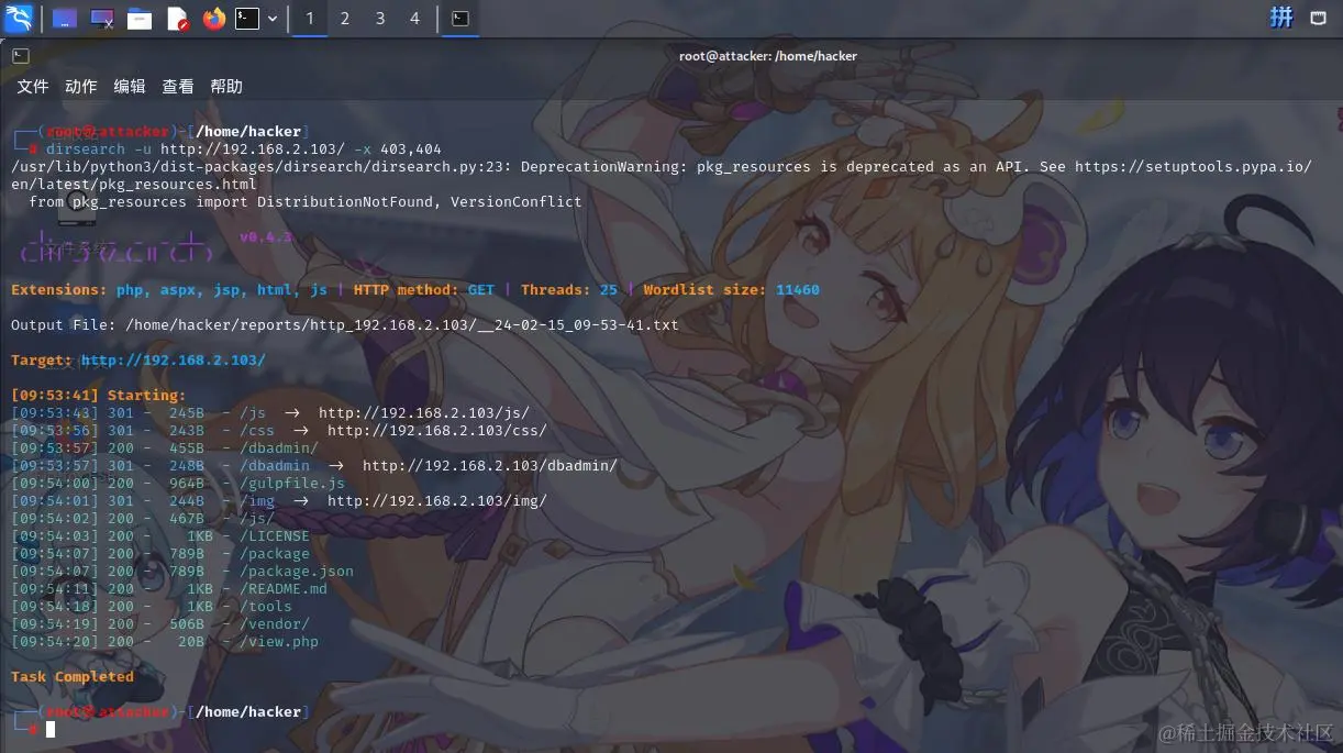 可以看到靶机IP地址为192.168.2.103,但原先的IP地址为192.168.2.102。(这里是因为隔了一个春节假期后再完成的提权部分,IP地址租约到期了)