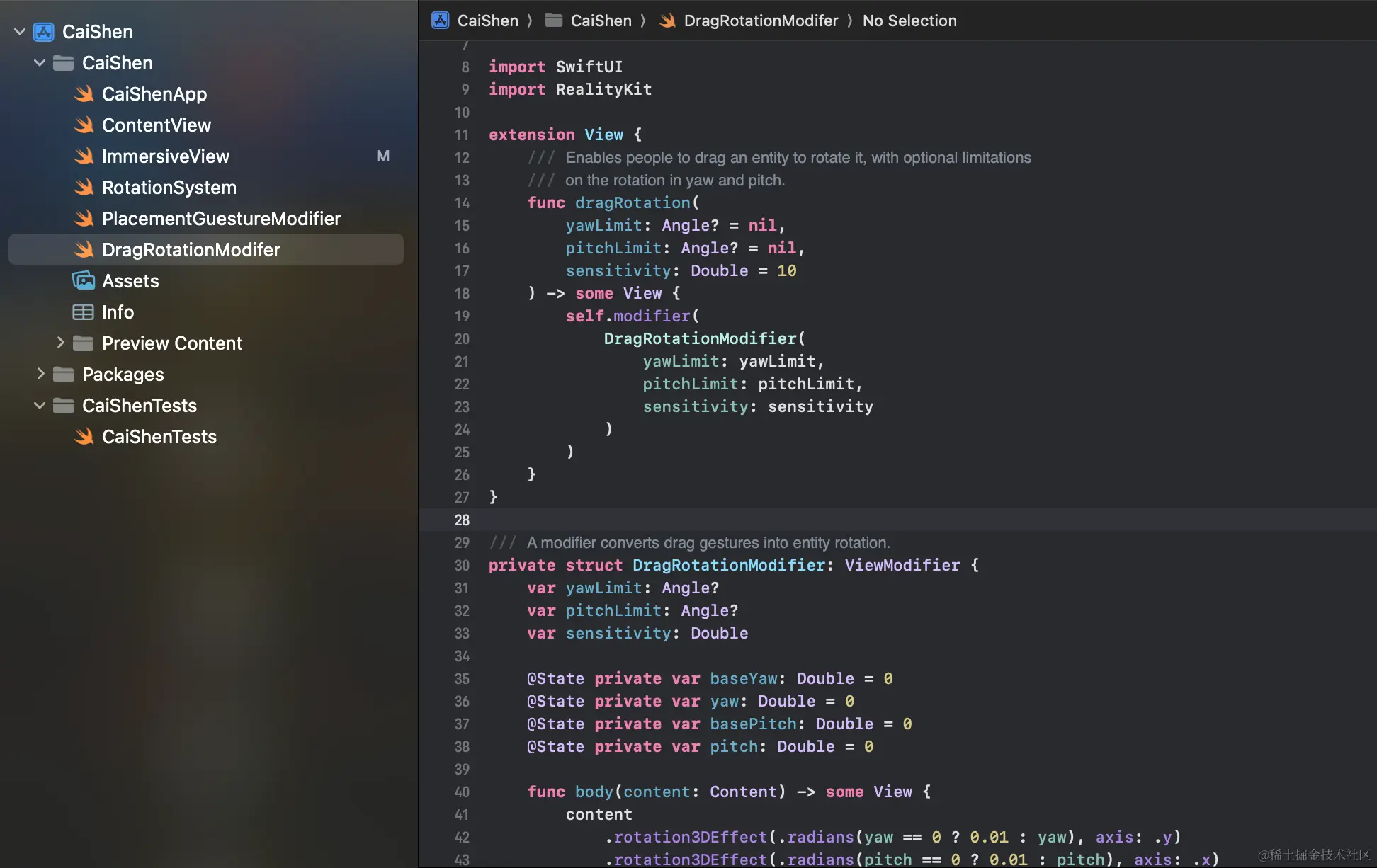 DragRotationModifier是用来实现模型拖拽旋转的Modifier,此代码直接Copy于官方Demo项目。