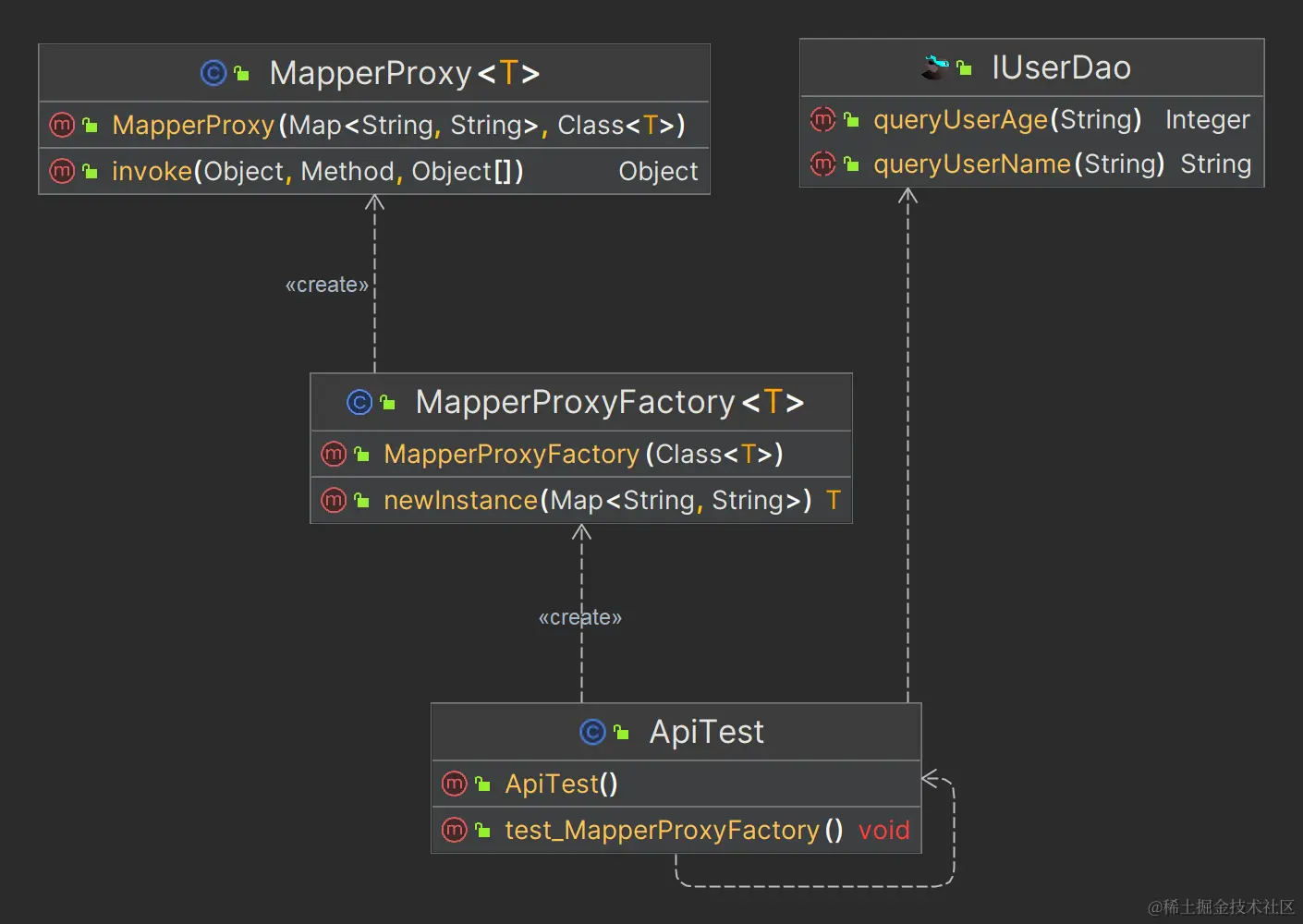 MapperProxyFactory<IUserDao> proxyFactory = new MapperProxyFactory<>(IUserDao.class);